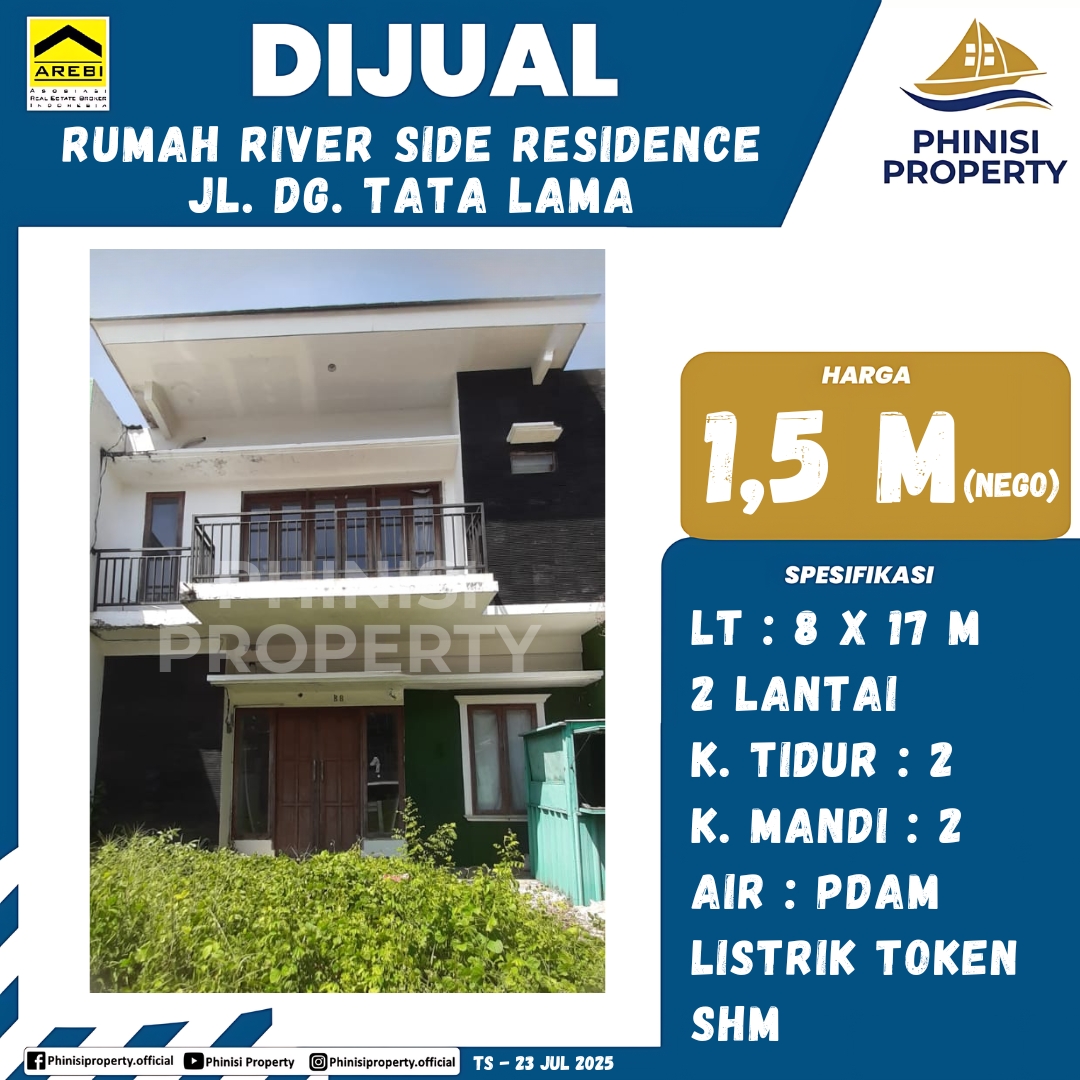 Dijual segera, sebuah rumah 2 lantai di RiverSide Residence, Jalan Dg. Tata Lama, yang menawarkan hunian nyaman di lokasi strategis. Properti ini memiliki luas tanah 136 m² (8 meter x 17 meter). Dengan 2 kamar tidur dan 2 kamar mandi, rumah ini cocok untuk keluarga kecil. Dilengkapi dengan fasilitas PDAM dan listrik token, serta status kepemilikan SHM (Sertifikat Hak Milik), rumah ini siap huni dan menjanjikan investasi yang aman. Jangan lewatkan kesempatan memiliki rumah di lingkungan yang tenang dan strategis ini.