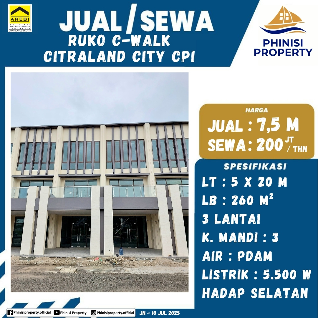 Ruko Dijual/Disewakan di CWalk Citraland City CPI
