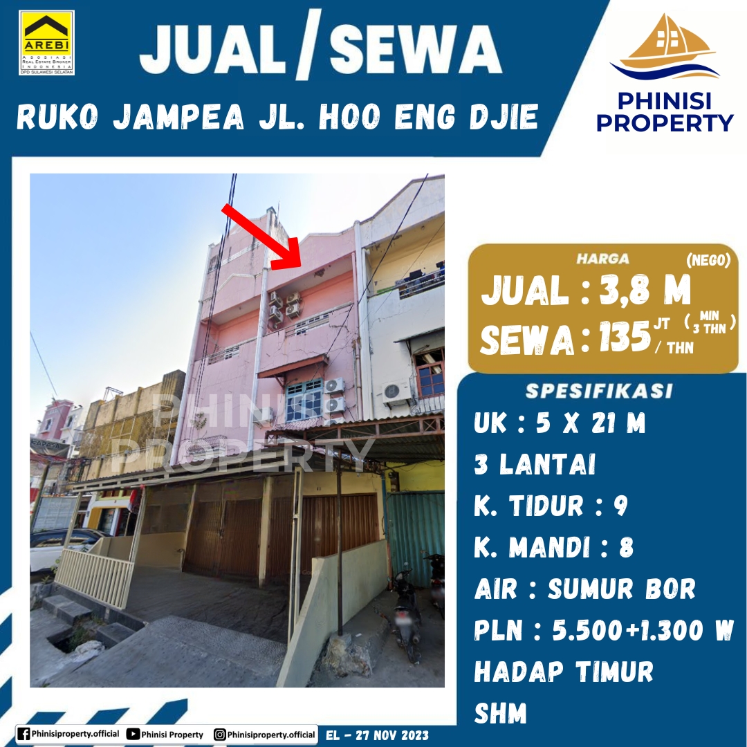 Dijual/Sewa: Ruko Jampea Jalan Hoo Eng Djie, Makassar
