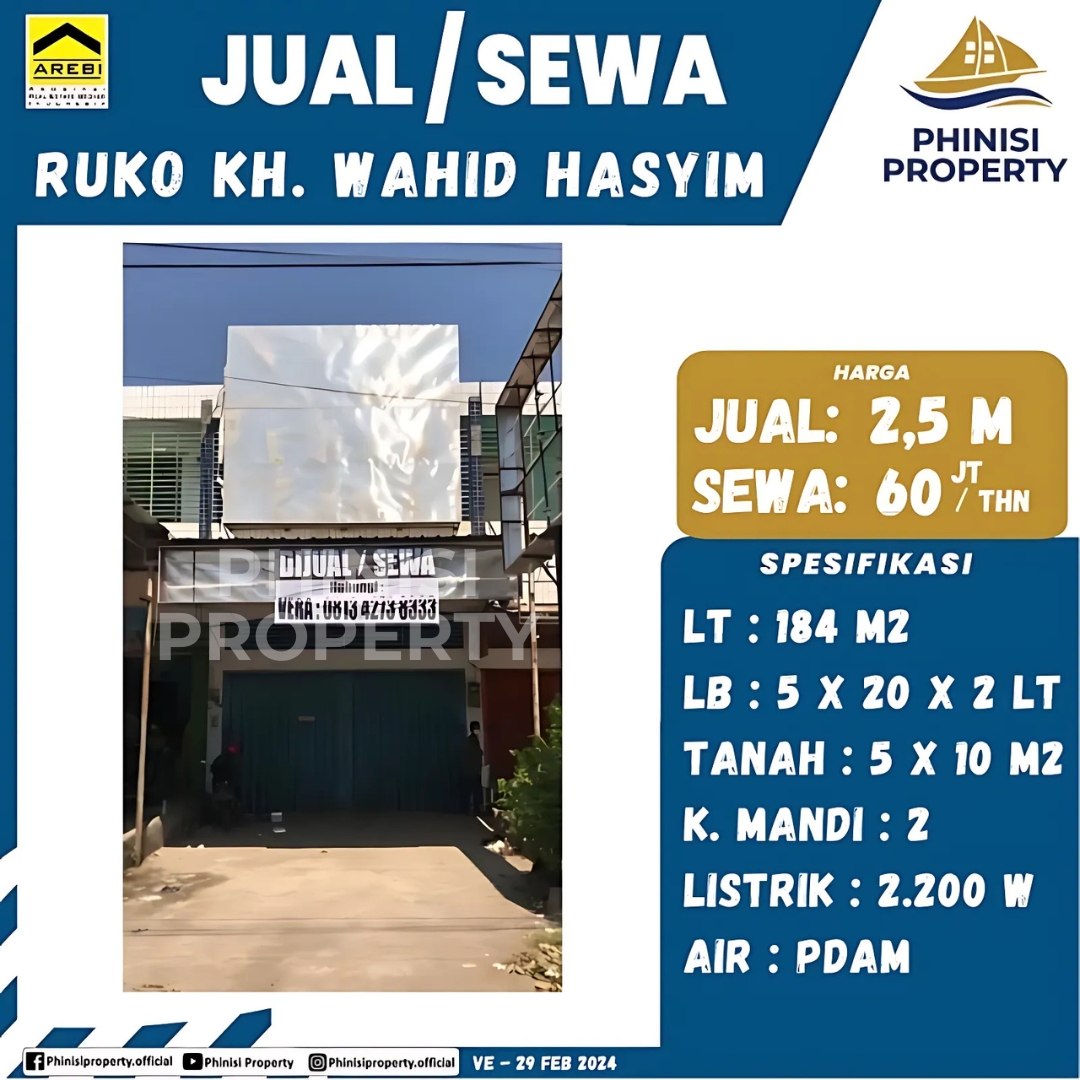 Dapatkan peluang emas untuk investasi atau pengembangan bisnis dengan ruko yang berlokasi sangat strategis di Jalan KH. Wahid Hasyim. Properti serbaguna ini tersedia untuk dijual atau disewa, menawarkan fleksibilitas sesuai kebutuhan Anda. Ruko ini memiliki luas tanah 184 M2 dengan bangunan dua lantai berukuran 5 x 20 M per lantai, dilengkapi sisa tanah belakang 5 x 10 M2 yang dapat dimanfaatkan. Dengan 2 kamar mandi, daya listrik 2.200 W, dan pasokan air PDAM, ruko ini siap menunjang berbagai aktivitas usaha. Ditawarkan dengan harga jual 2,5 Miliar atau sewa 60 Juta per tahun, ruko di KH. Wahid Hasyim ini merupakan pilihan cerdas bagi Anda yang mencari properti komersial di lokasi prima dengan potensi keuntungan tinggi.