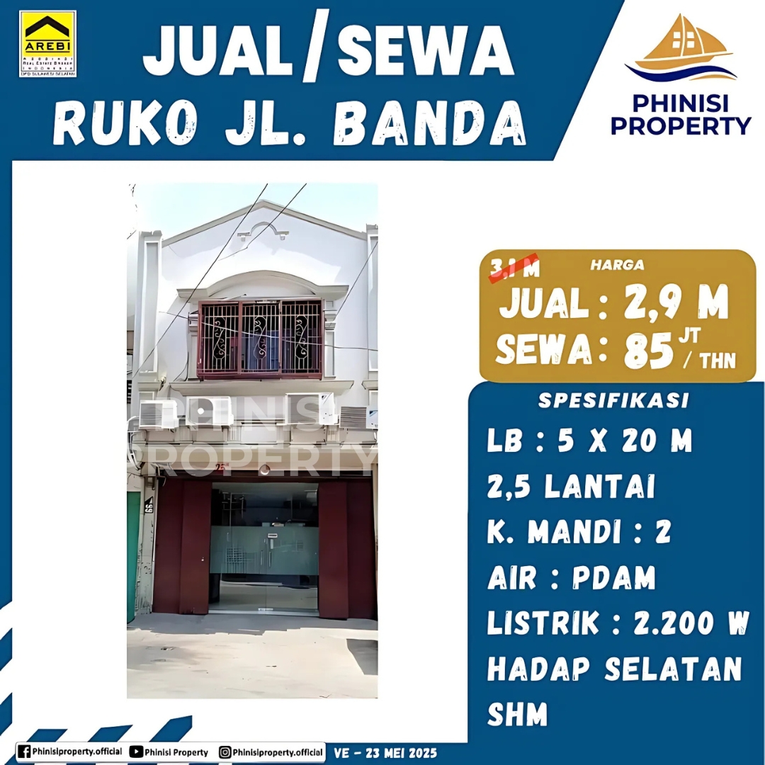 Jual / Sewa Ruko Strategis 2,5 Lantai di Jl. Banda – Peluang Bisnis di Jantung Kota Makassar!