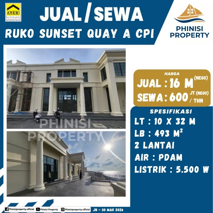 Jual/Sewa Ruko Sunset Quay A CPI - Sunset Quay A, Panambungan, Mariso, Makassar, Sulawesi Selatan, Sulawesi, Indonesia