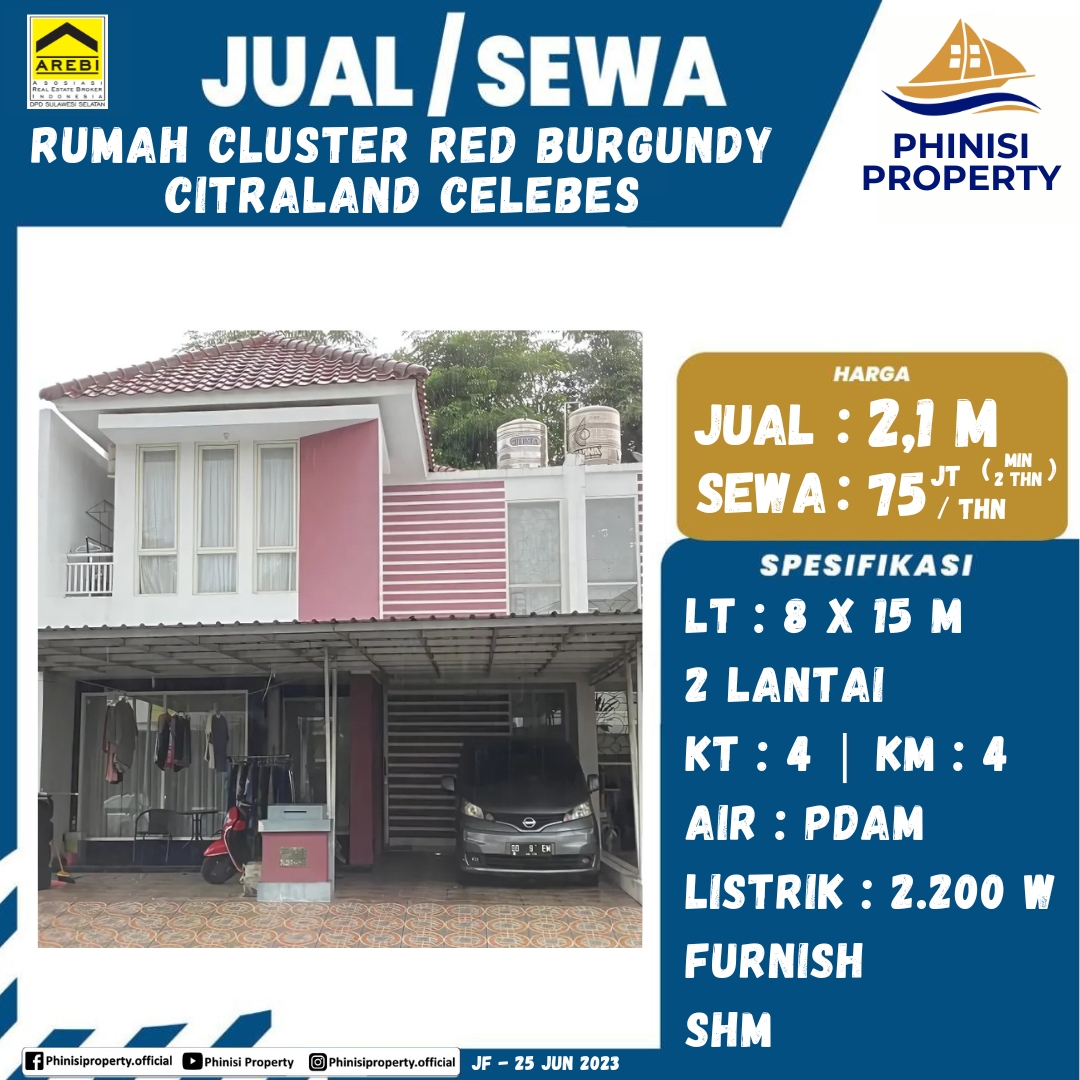 Jual/Sewa Rumah Cluster Red Burgundy Citraland Celebes