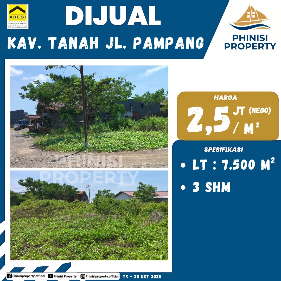 Dijual cepat, kavling tanah yang sangat luas di lokasi strategis Jalan Pampang, menawarkan peluang besar untuk investasi atau pengembangan properti skala besar. Lahan ini memiliki spesifikasi yang sangat menarik, dengan total luas tanah (LT) mencapai 7.500 meter persegi. Ukuran ini ideal untuk dikembangkan menjadi komplek perumahan, gudang, atau proyek komersial lainnya. Keunggulan legalitas lahan ini terjamin karena didukung oleh 3 Sertifikat Hak Milik (SHM) yang lengkap dan jelas. Dengan lokasi di area yang terus berkembang, kavling tanah ini merupakan aset berharga yang menjanjikan peningkatan nilai investasi di masa depan.