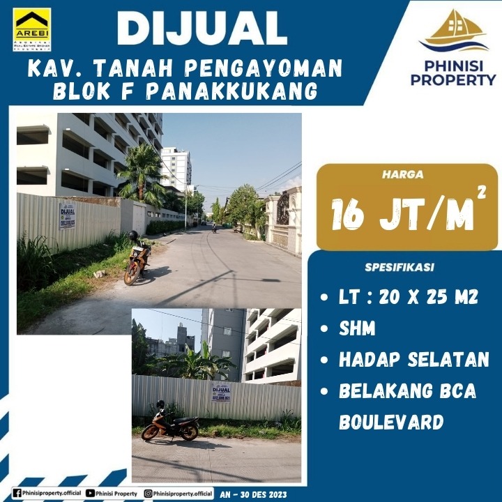 Miliki aset berharga dengan kavling tanah yang dijual di Pengayoman, Blok F Panakkukang. Berada di lokasi premium dan strategis, properti ini ideal untuk pembangunan hunian atau properti komersial. Dengan luas 20x25 meter persegi, setara dengan 500 meter persegi, lahan ini menawarkan ruang yang sangat luas dan fleksibel. Menghadap ke arah selatan, properti ini mendapatkan pencahayaan alami yang baik. Lokasinya yang berada di belakang BCA Boulevard menjamin akses mudah dan nilai properti yang tinggi. Dengan status kepemilikan SHM (Sertifikat Hak Milik), Anda dapat merasa tenang dengan legalitas properti ini. Jangan lewatkan kesempatan langka untuk memiliki lahan di salah satu lokasi paling strategis dan dicari di Makassar.