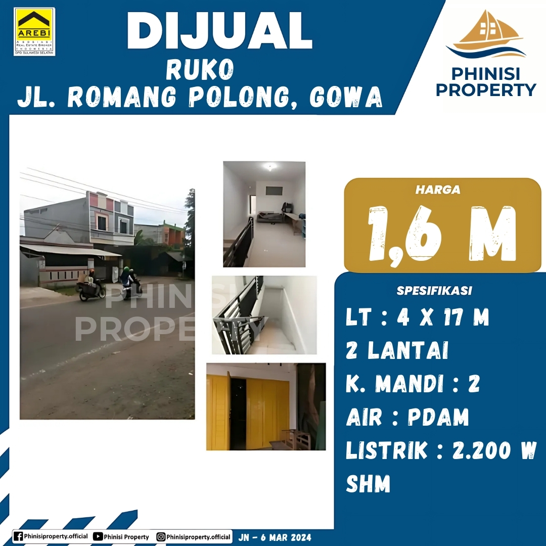 Ruko Dijual di Jalan Romang Polong, Gowa