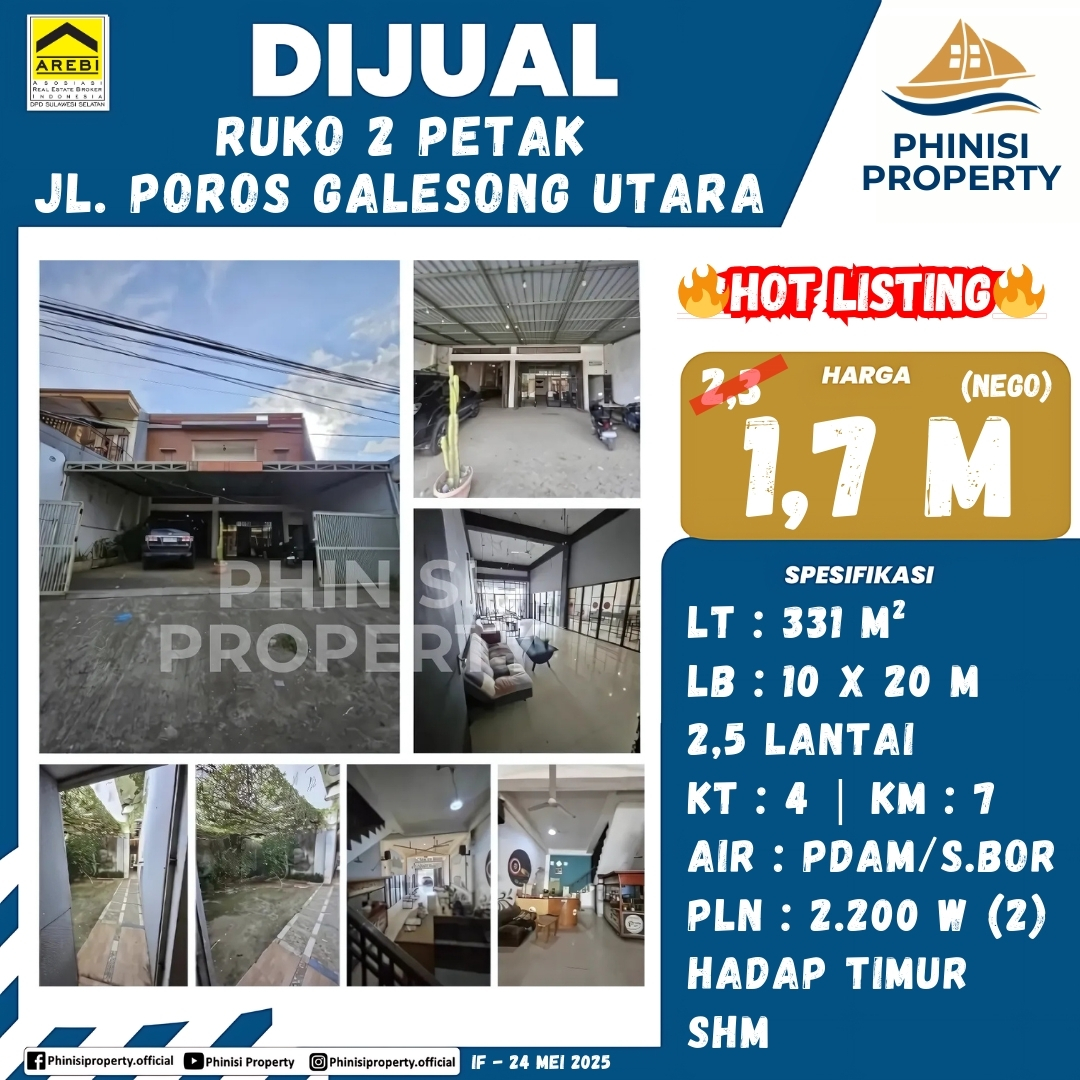 Dijual Ruko 2 Petak Lengkap Rootof View Hadap Sawah Daerah Poros Galesong Dengan Kondisi Bangunan Masih Bagus Tanpa Renov Lagi