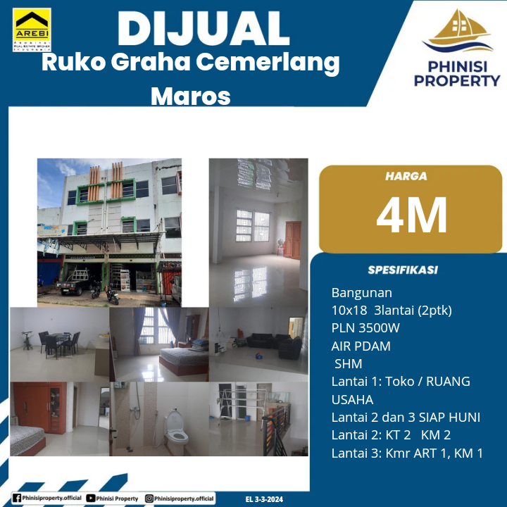Ruko Graha Cemerlang Maros - Graha Cemerlang, Jalan Poros Makassar - Maros, RW 04 Dusun Padang Sessere, Maros, Kelurahan Hasanuddin, South Sulawesi, Sulawesi, 90552, Indonesia