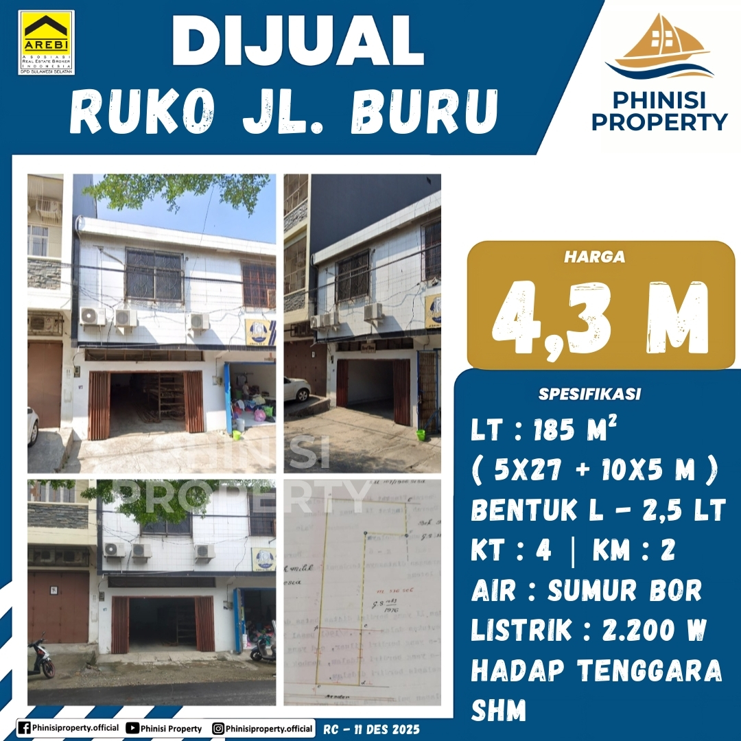 Dijual Ruko Jalan Buru - Jalan Buru, Melayu, Wajo, Makassar, Sulawesi Selatan, Sulawesi, 90156, Indonesia
