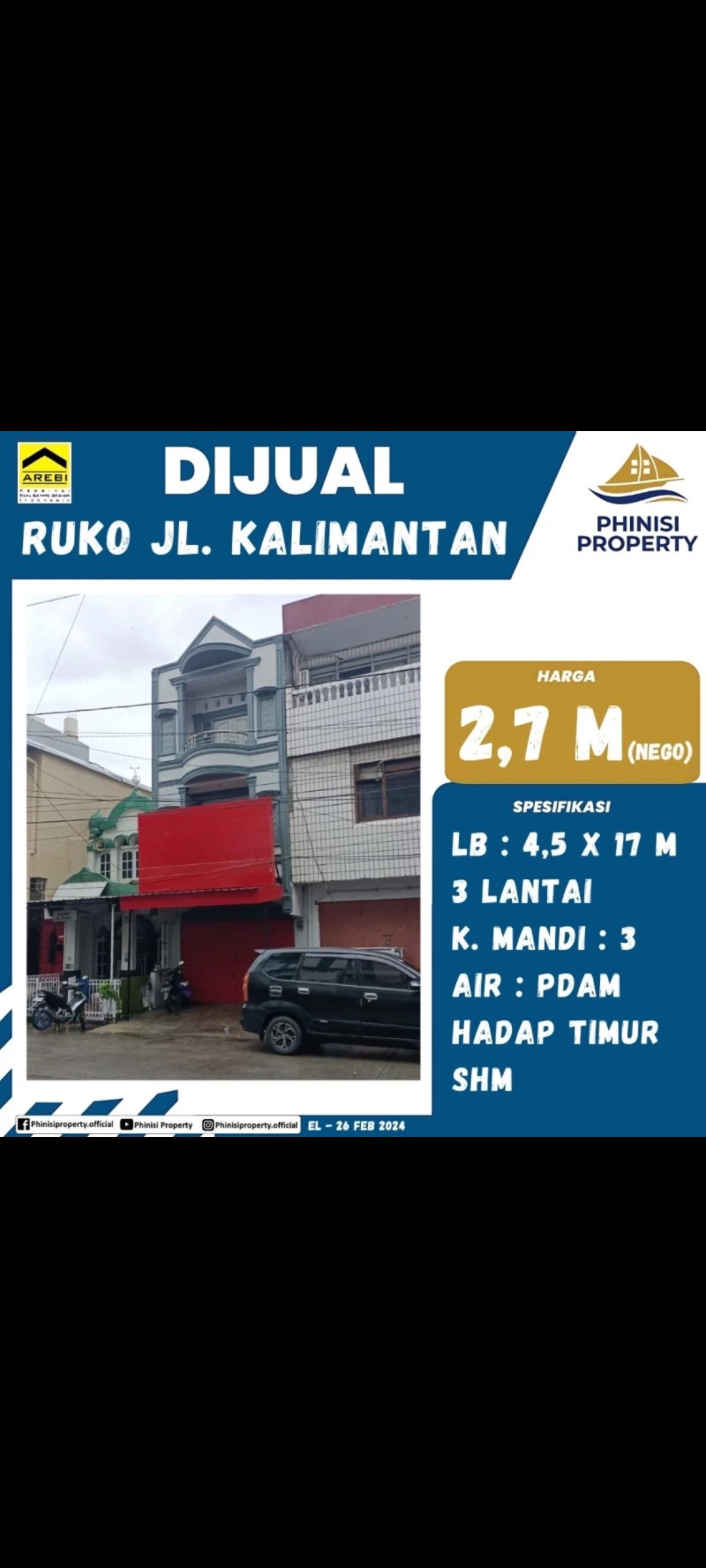 Ruko jl. Kalimantan LB 220m2 Merupakan area dagang Dekat dari Pasar Butung Pelabuhan Laut Serta akses Toll