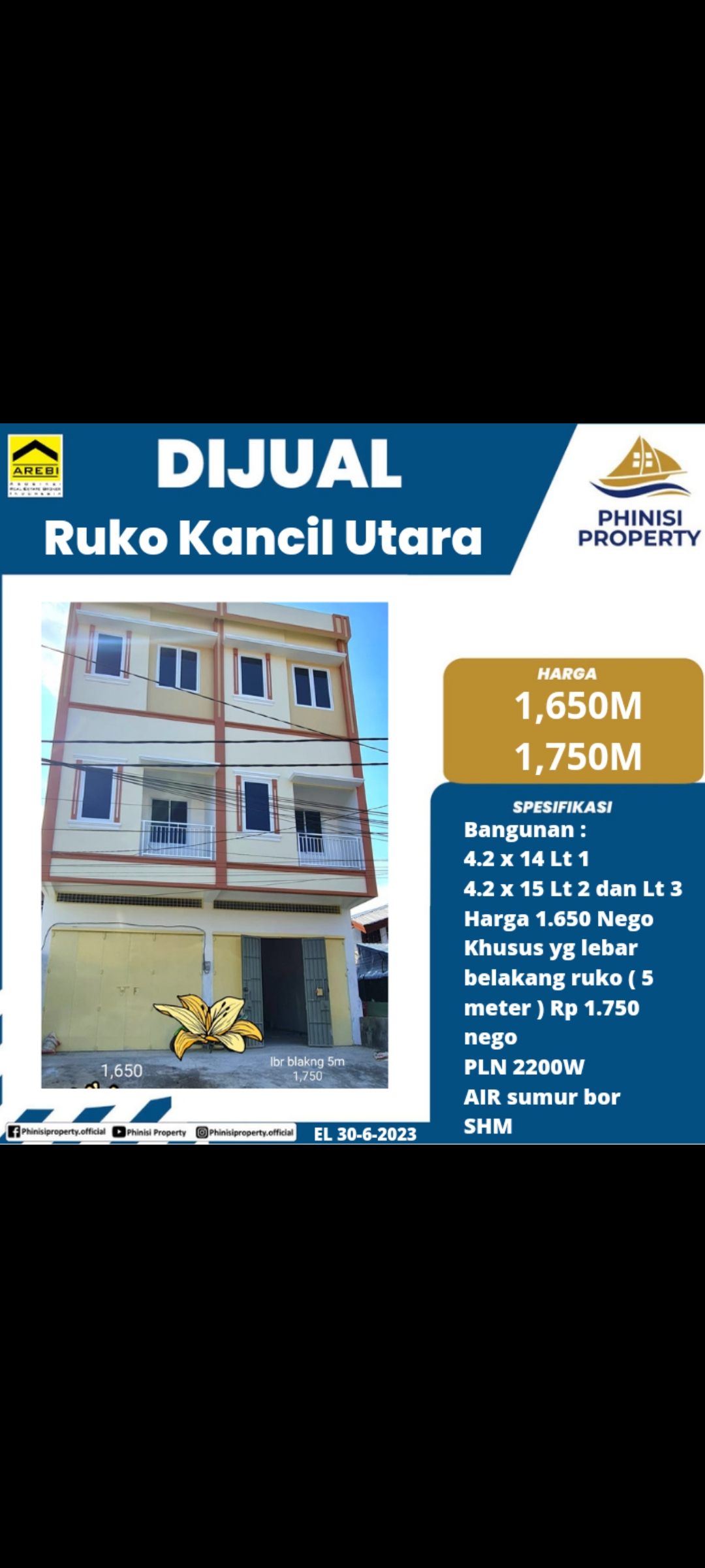Ruko Kancil Utara LT 72 LB 168 Bangunan 3 lantai
