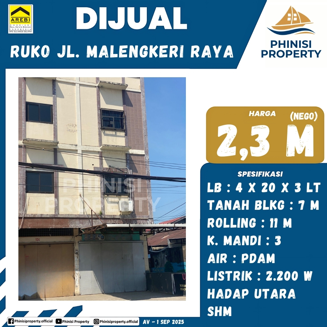 DIJUAL: Ruko Komersial Strategis di Jl. Malengkeri Raya
