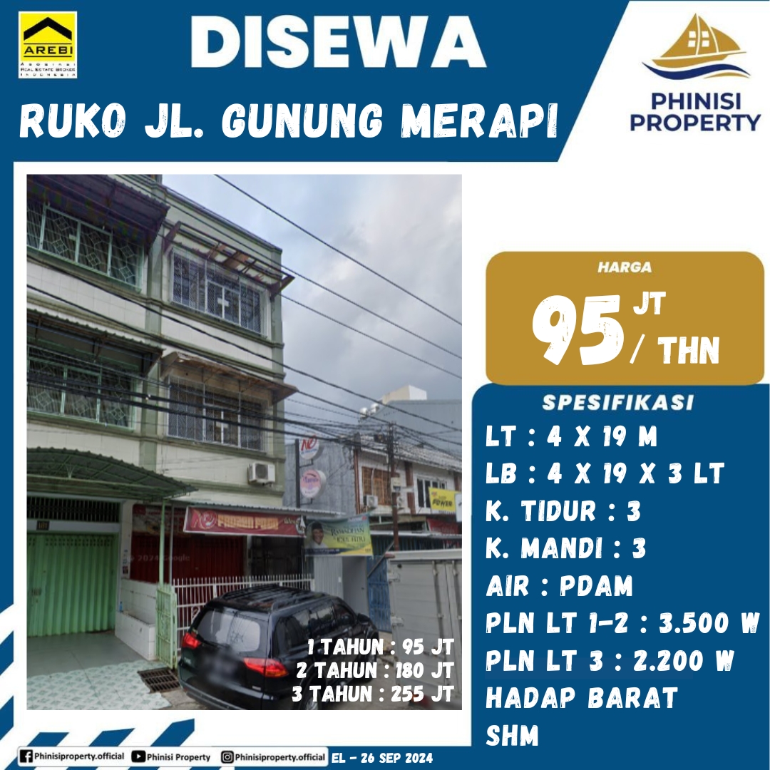 Ruko Niaga Gunung Merapi Siap Pakai Bangunan 3,5 lantai SHM