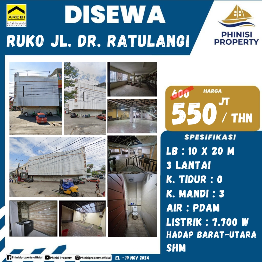 Ruko Sudut Poros jl. Ratulangi Strategis untuk usaha LT 300 LB 600 SHM