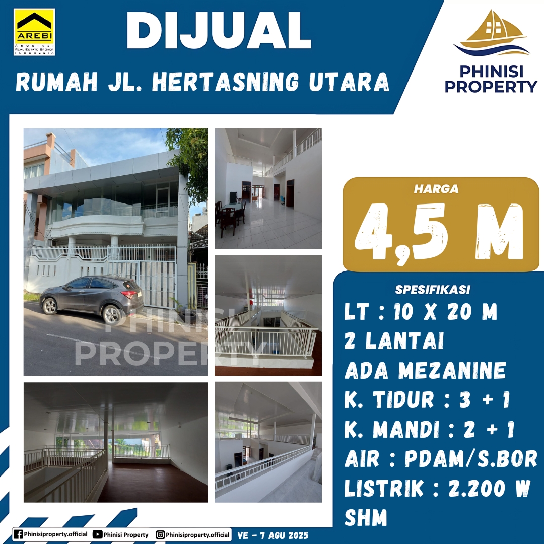 Miliki segera rumah impian Anda di lokasi strategis, Jalan Hertasning Utara. Rumah modern 2 lantai ini menawarkan kenyamanan dan gaya hidup mewah dengan desain elegan. Dilengkapi dengan mezzanine, rumah ini memiliki tata ruang yang efisien dan fungsional. Dengan 3+1 kamar tidur dan 2+1 kamar mandi, hunian ini sangat cocok untuk keluarga yang mencari kenyamanan dan privasi. Tersedia fasilitas air PDAM/sumur bor dan daya listrik 2200 watt. Dapatkan properti impian Anda sekarang juga dan nikmati kenyamanan hidup modern di lokasi yang mudah diakses.