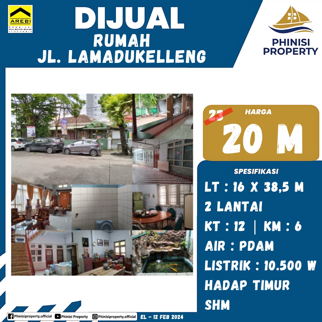 Rumah Jl. Lamadukelleng LT 617m2 (16x38,5) Tingkat 2 lantai Hadap Timur Kmr Tidur 11+1 (12) Kmr Mandi 6 PLN 10500W AIR PDAM + 2 SUMUR SHM Akses depan SMA Rajawali, belakang hotel Ibis dan Pantai Losari. Dekat sarana kesehatan (RS Stella Maris), Wisata kuliner, wisata pantai, perkantoran, perdagangan. Cocok usaha kosan / penginapan, kuliner, ekspansi usaha, toko oleh-oleh, kantor, dan usaha penunjang lainnya.