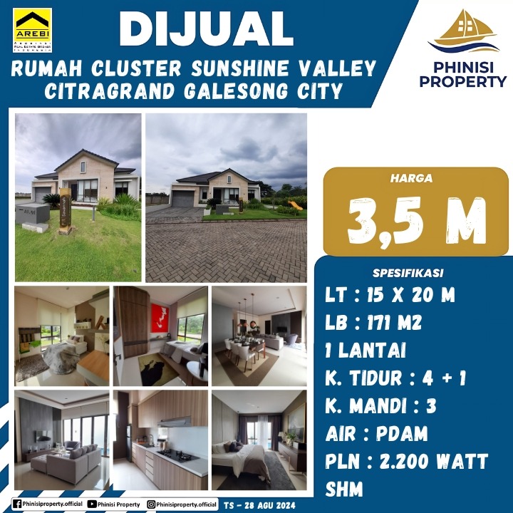 Mencari hunian mewah dan nyaman? Rumah yang satu ini berlokasi di Cluster Sunshine Valley, kawasan elit Citragrand Galesong City. Dengan luas tanah 300 m² (15 m x 20 m) dan luas bangunan 171 m², rumah satu lantai ini menawarkan ruang yang sangat luas dan fungsional. Dilengkapi dengan 4 1 kamar tidur dan 3 kamar mandi, rumah ini sangat cocok untuk keluarga besar. Fasilitas pendukung seperti air PDAM dan listrik 2.200 W menjamin kenyamanan harian Anda. Properti ini berstatus Sertifikat Hak Milik (SHM), yang memberikan kepastian dan keamanan investasi properti jangka panjang.