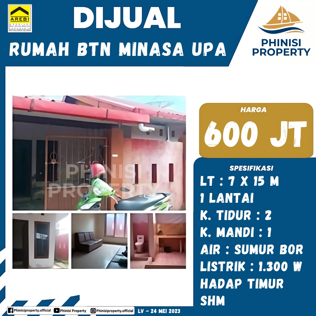Sebuah rumah di BTN Minasa Upa tersedia untuk dijual. Properti ini berdiri di atas lahan seluas 105 meter persegi dengan dua kamar tidur dan satu kamar mandi. Rumah ini dilengkapi dengan listrik 1.300 watt dan menggunakan sumur bor untuk pasokan air. Menghadap ke arah timur, rumah ini menawarkan pencahayaan alami yang baik, menjadikannya pilihan ideal bagi keluarga kecil yang mencari hunian minimalis dan fungsional.