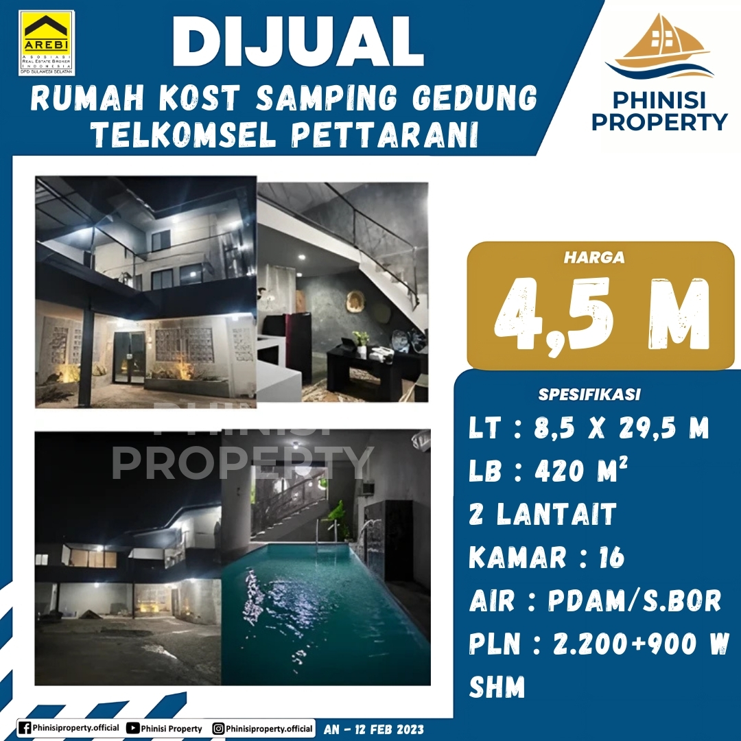 Mencari properti investasi yang menjanjikan? Rumah kos yang berlokasi di samping Gedung Telkomsel Pettarani ini adalah pilihan yang sangat ideal. Dengan total luas tanah 250,75 meter persegi dan luas bangunan 420 meter persegi, bangunan 2 lantai ini menawarkan 16 kamar yang siap menghasilkan pendapatan pasif. Dilengkapi dengan air PDAM dan sumur bor, serta daya listrik 2.200 dan 900 watt, properti ini menawarkan fasilitas lengkap untuk kenyamanan penghuninya. Lokasinya yang sangat strategis di pusat kota menjadikan kos-kosan ini selalu diminati, menjadikannya investasi yang sangat menguntungkan di masa depan.