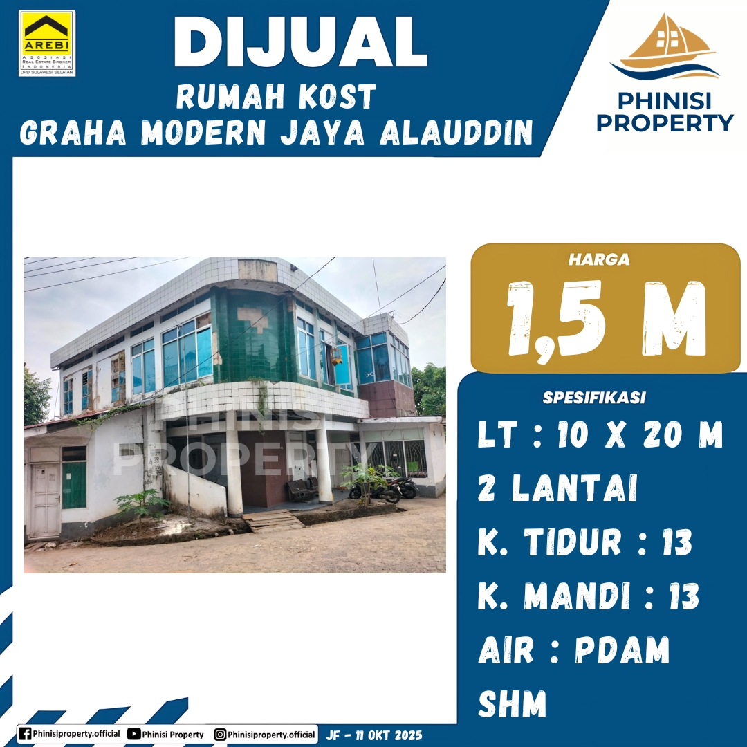 Amankan investasi properti Anda dengan memiliki Rumah Kost Dijual di lokasi strategis Graha Modern Jaya Alauddin. Properti ini sangat ideal untuk bisnis sewa kamar dengan Luas Tanah (LT) 10 x 20 m yang memberikan total luas 200 m2. Bangunan 2 lantai ini memiliki kapasitas besar dengan total 13 Kamar Tidur (KT) dan 13 Kamar Mandi (KM), menjamin privasi dan kenyamanan setiap penyewa. Status kepemilikan sudah Sertifikat Hak Milik (SHM), memastikan legalitas yang sah. Fasilitas pendukung mencakup pasokan Air PDAM yang terjamin. Lokasi yang berada di area ramai dan dekat kampus/pusat bisnis membuat rumah kost ini menjadi aset dengan potensi pendapatan pasif yang sangat menjanjikan.