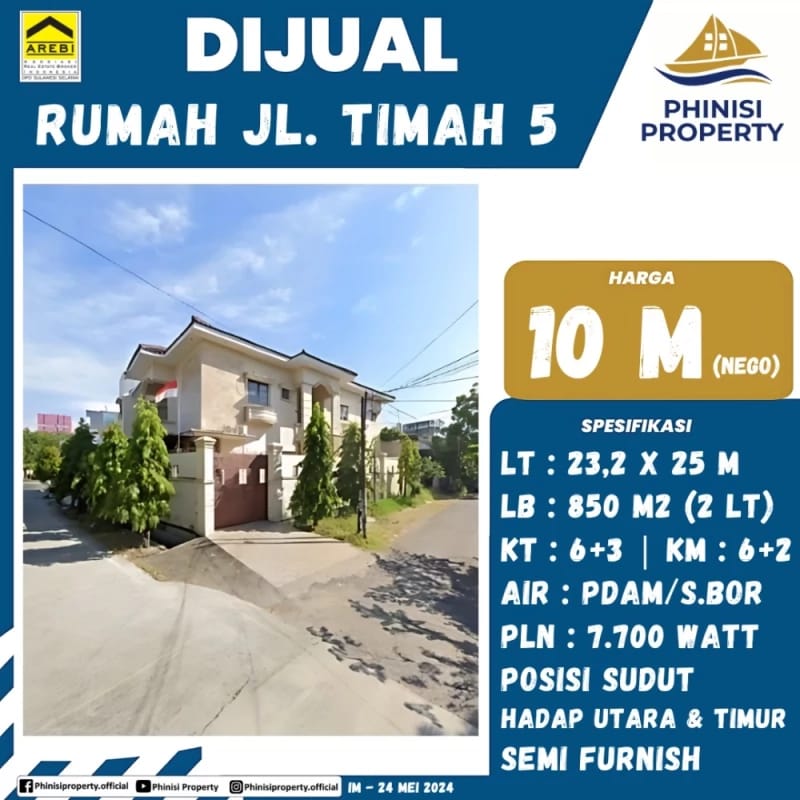 Rumah cantik di jl. Timah, posisi sudut, lantai marmer. luas tanah 580 m (23,2 x 25) luas bangunan 850m2 kamar tidur 6 3, kamar mandi 6 2 ke bandara 20 menit dekat dengan jalan layang posisi rumah dekat jl. pettarani, jl. sungai saddang, jl. pelita dekat dengan hotel Maleo, posisi dibelakang kantor PU (pekerjaan umum)