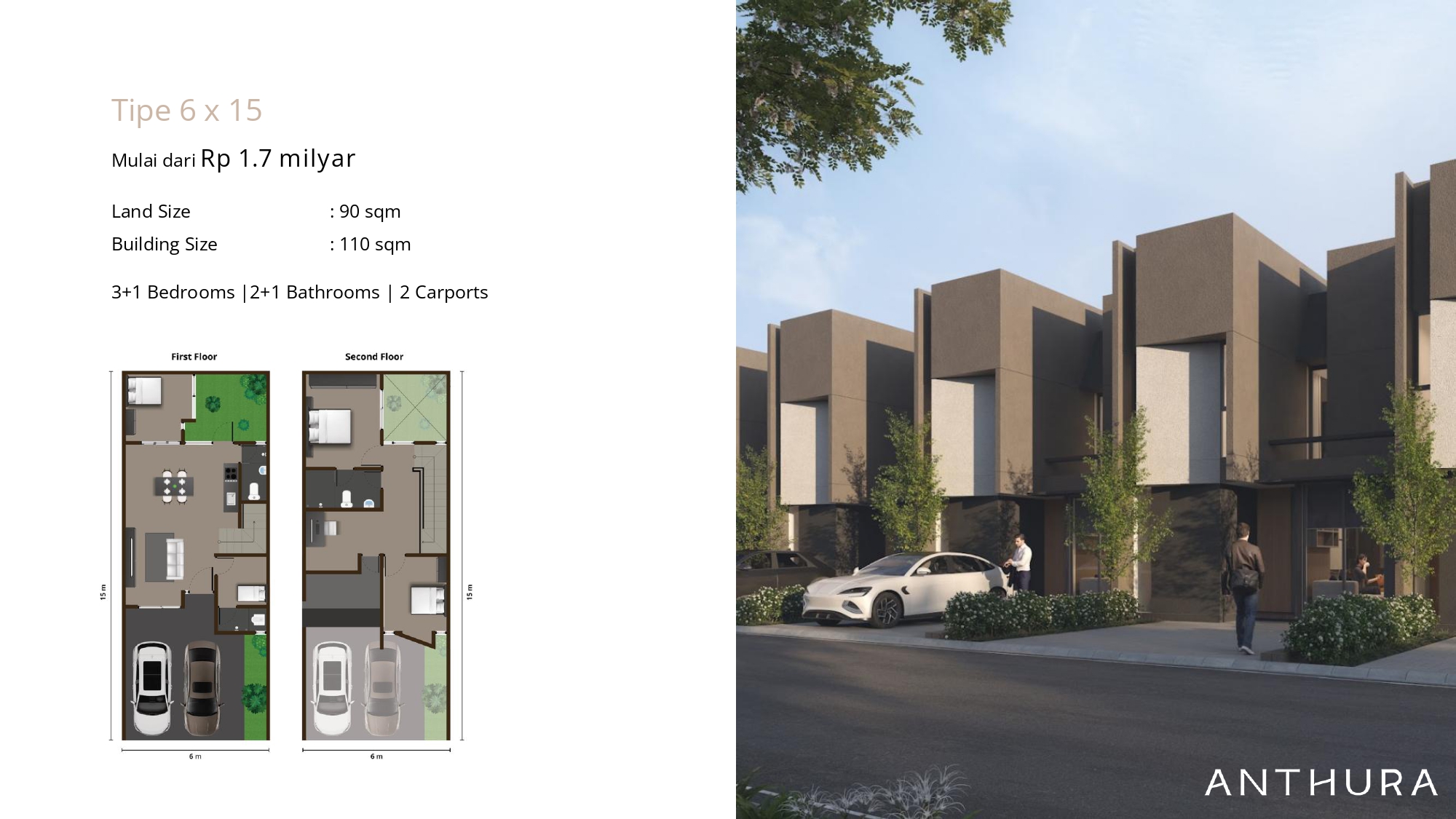 Dirancang untuk keluarga modern dengan preferensi tata ruang praktis, tipe ini berdiri di atas lahan seluas 90 m2 dan memiliki bangunan seluar 110 m2. Menghadirkan kenyamanan dan efisiensi untuk mendukung berbagai aktivitas sehari-hari.