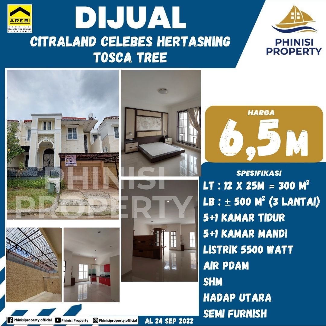 DIJUAL Rumah Tosca Tree Citraland Celebes Hertasning MakassarRumah strategis di kawasan tengah kota di kawasan prestisius Citraland Celebes Hertasning Makassar, terletak di lingkungan yang aman, tertata, dan mudah diakses dari jalan utama.