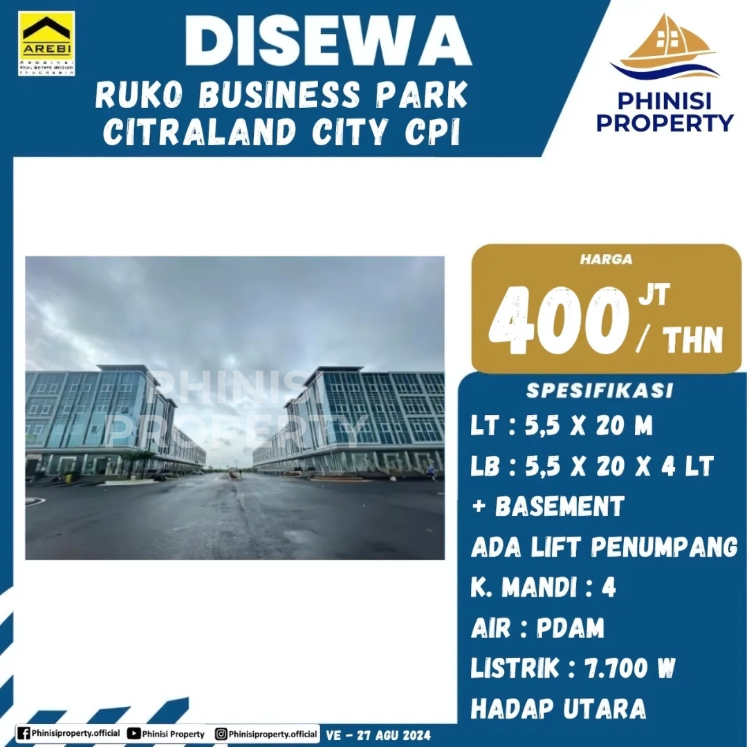 Sewa Ruko Business Park Citraland City CPI Makassar - Centre Point of Indonesia (CPI), Panambangan, Mariso, Makassar, South Sulawesi, Sulawesi, Indonesia