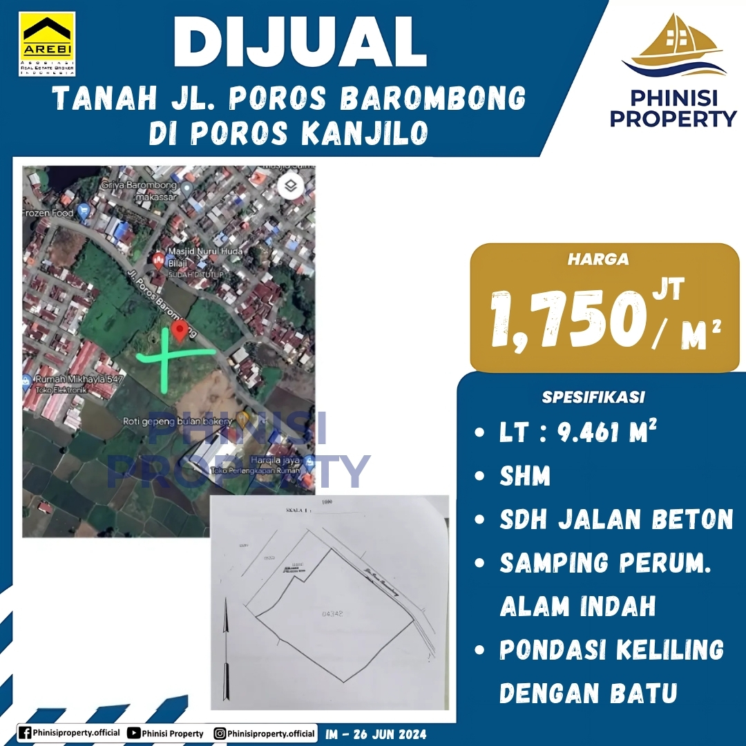 Tanah di Jl. Poros Barombong di Poros Kanjilo ini merupakan aset properti yang menjanjikan, ideal untuk investasi jangka panjang. Dengan luas tanah 9.461 meter persegi, tanah ini sangat cocok untuk berbagai proyek, mulai dari pengembangan perumahan hingga bisnis komersial. Lokasinya strategis, sudah memiliki akses jalan beton, dan berada di samping perumahan Alam Indah. Properti ini juga dilengkapi dengan pondasi keliling dari batu dan bersertifikat Hak Milik (SHM), menjamin kepastian dan legalitasnya.