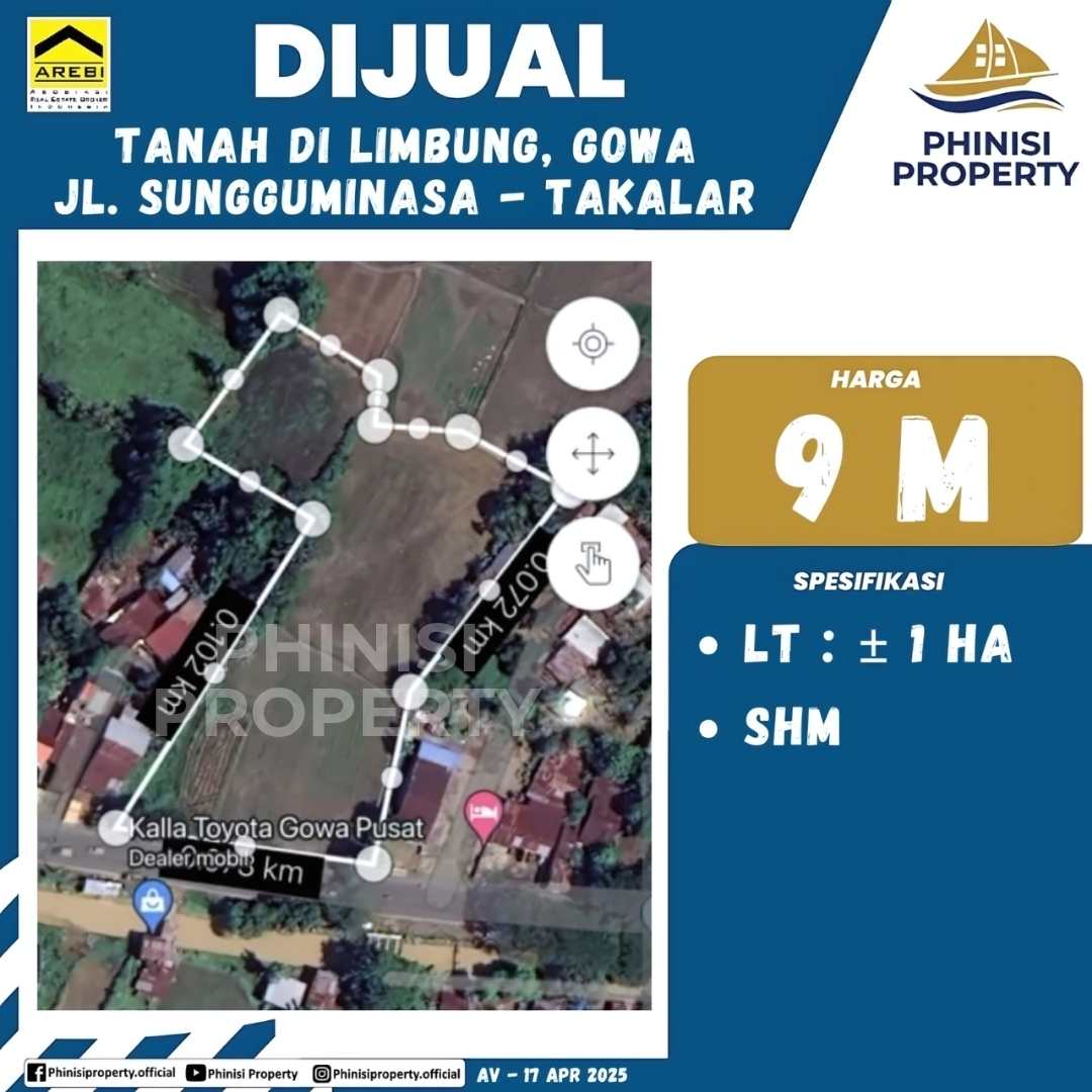 Bagi Anda yang sedang mencari aset properti dengan potensi investasi tinggi, tanah yang berlokasi di Limbung, Gowa, di jalur Jl. Sungguminasa - Takalar ini adalah pilihan yang sangat menjanjikan. Dengan luas total ± 1 hektar, tanah ini memberikan fleksibilitas luar biasa untuk berbagai pengembangan, mulai dari hunian, perumahan, hingga properti komersial skala besar. Lokasinya yang strategis di area yang terus berkembang menjadikannya sangat ideal untuk pembangunan di masa depan. Ditambah dengan status kepemilikan Sertifikat Hak Milik (SHM) yang sah, properti ini menawarkan keamanan legalitas yang solid, menjadikan investasi Anda aman dan terjamin.