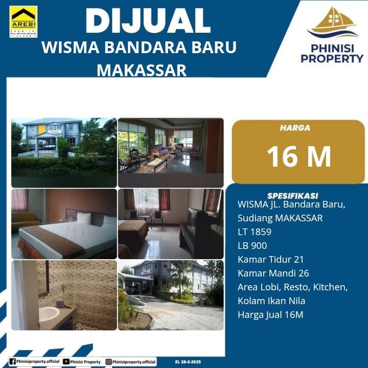 Cari properti komersial strategis di Makassar? Wisma Bandara Baru bisa jadi jawabannya. Berlokasi di Jalan Bandara Baru, Sudiang, properti ini menawarkan luas tanah 1859 meter persegi dan luas bangunan 900 meter persegi. Dengan 21 kamar tidur dan 26 kamar mandi, wisma ini sangat cocok untuk dijadikan penginapan, kantor, atau bisnis lainnya. Selain itu, terdapat lobi, restoran, dapur, dan kolam ikan nila yang menambah daya tarik wisma ini. Potensi bisnis yang menjanjikan, lokasi strategis, dan fasilitas lengkap menjadikan wisma ini investasi yang sangat berharga.