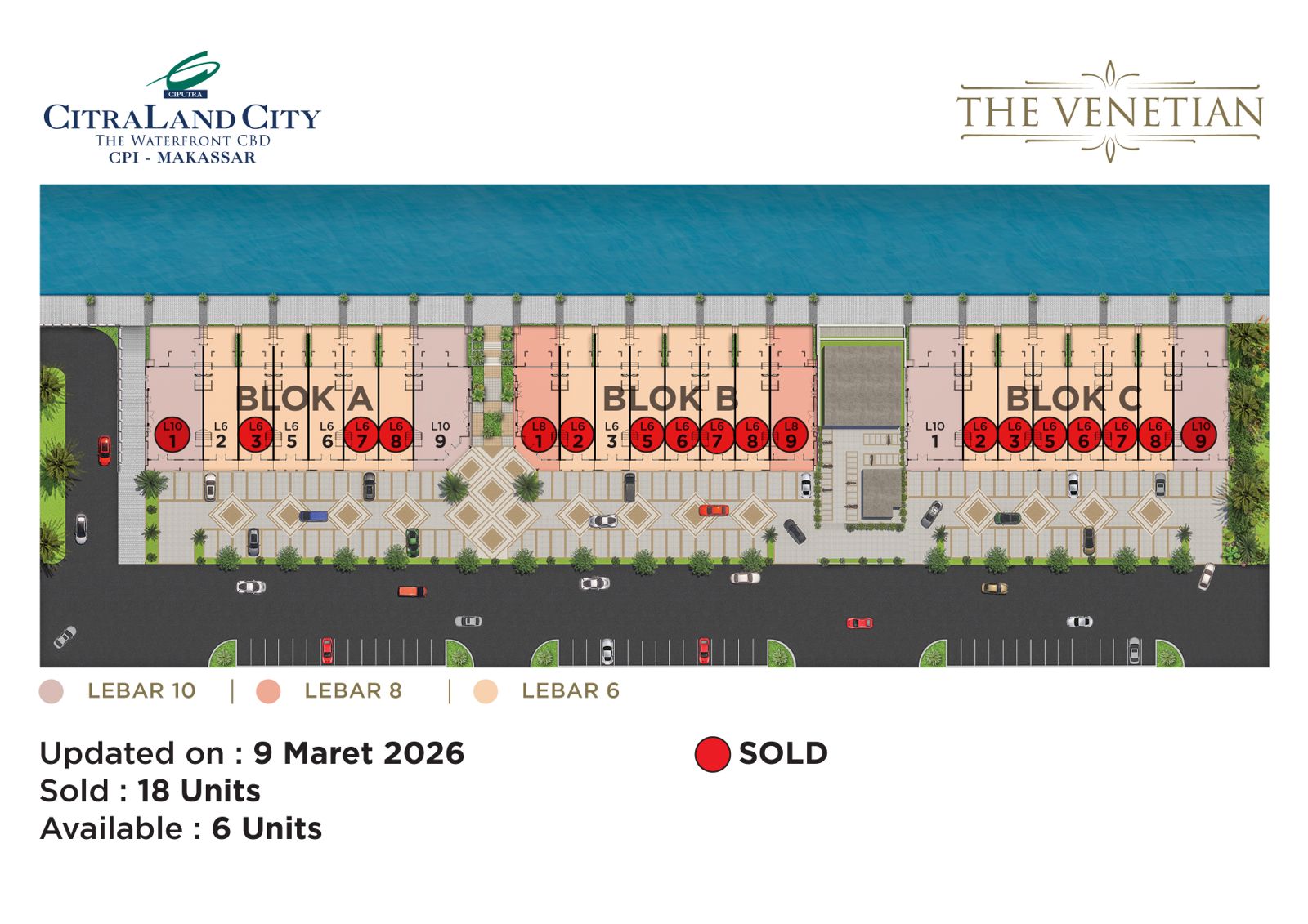 The Venetian menghadirkan perpaduan sempurna antara kemewahan arsitektur klasik dan lokasi strategis di kawasan Central Business District (CBD) tepi laut paling prestisius di Makassar. Sebagai produk shop office terbaru dari CitraLand City CPI, The Venetian dirancang khusus untuk Anda yang ingin menghadirkan citra bisnis yang elegan, eksklusif, dan berkelas.